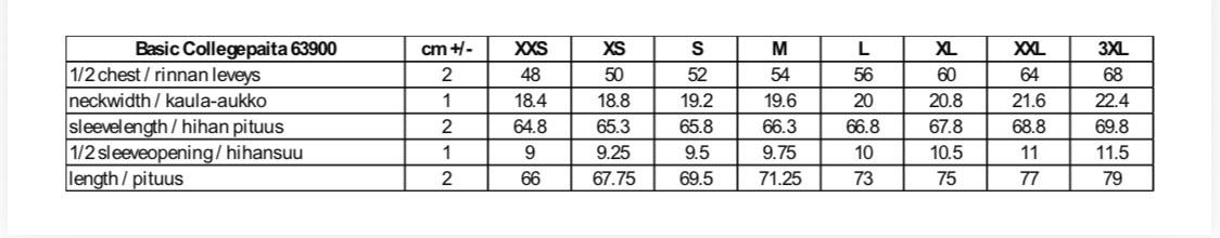 | Koko | XS, S, M, L, XL, XXL |